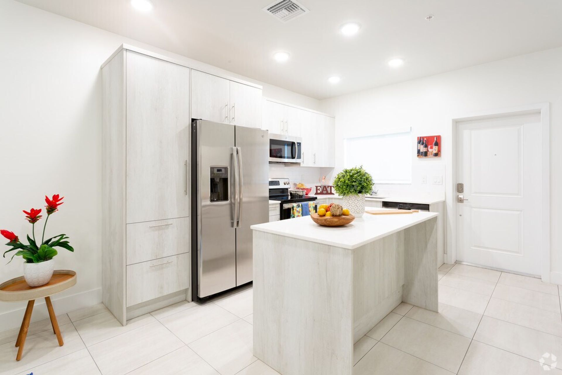 Inside, you’ll find a sleek kitchen with quartz countertops, stainless steel appliances, and custom cabinetry that opens to a large living and dining area—ideal for hosting or unwinding. The bedrooms are generously sized with ample closet space, and the bathrooms feature modern tile work and contemporary fixtures. With designated parking included, you’ll enjoy the ease of coming and going without hassle.