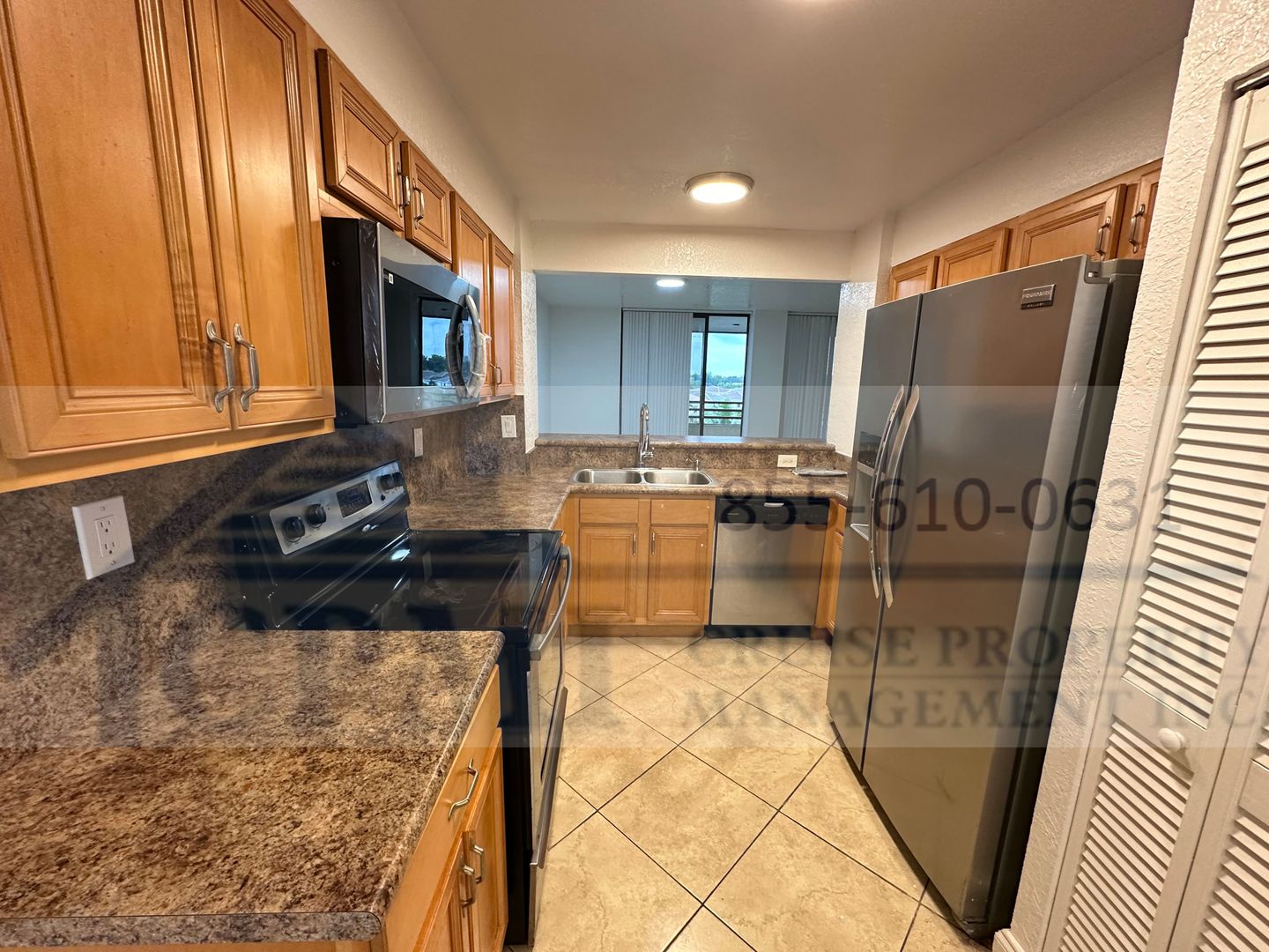 Step into a spacious living room featuring sleek porcelain floors that create a modern and comfortable atmosphere. The two bedrooms offer ample space to accommodate all your furniture, and you'll appreciate the convenience of a walk-in closet for your storage needs. The kitchen is equipped with stainless steel appliances and offers plenty of space for meal preparation.