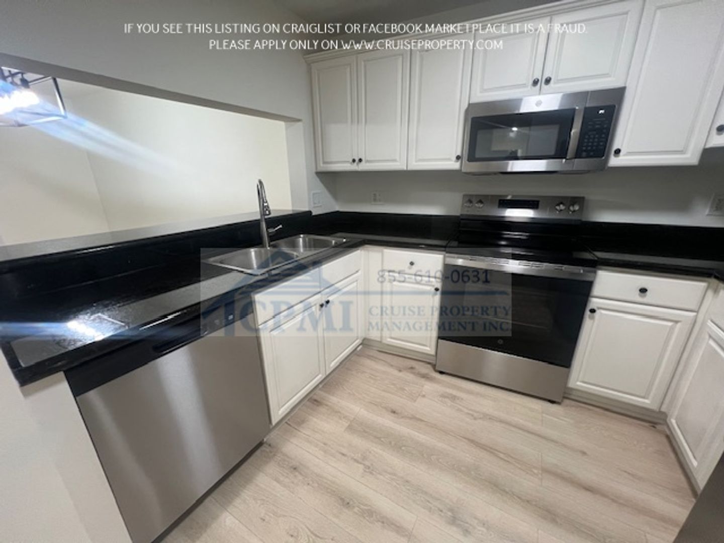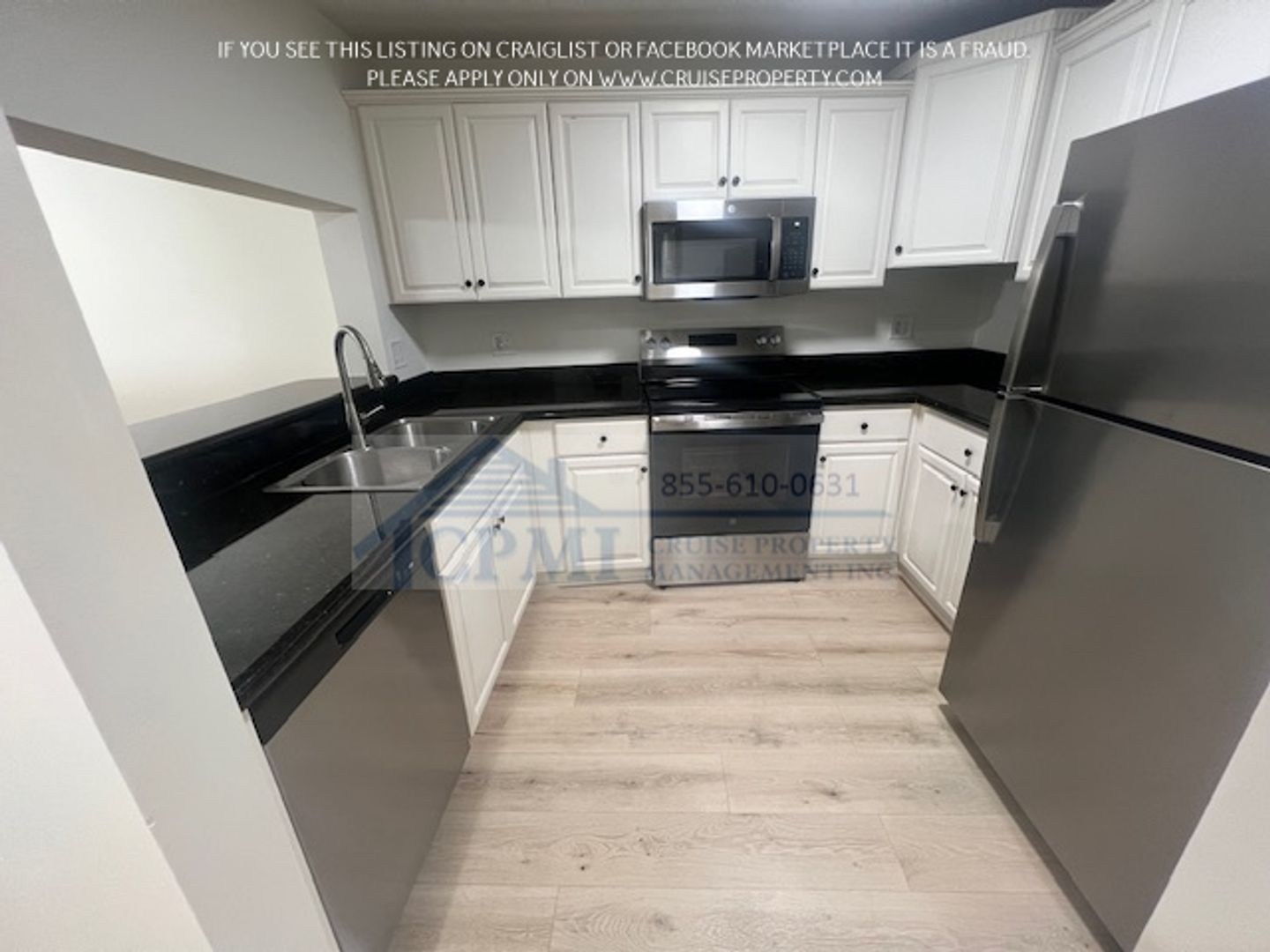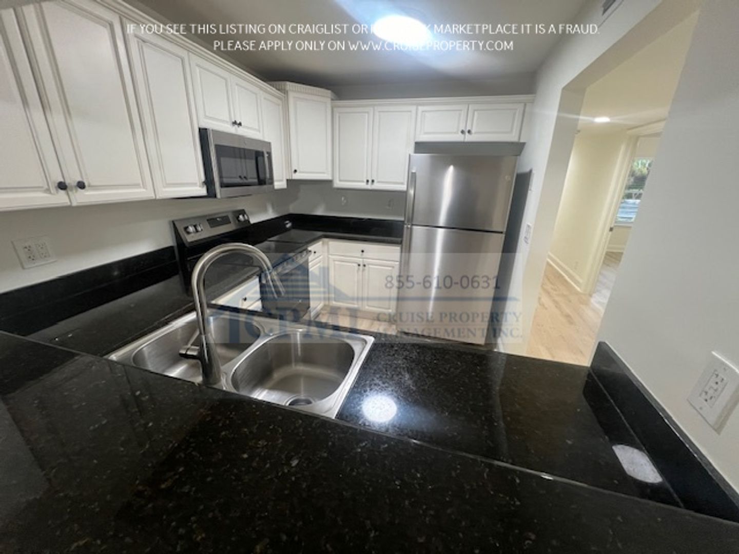 Each residence features a bright and open floor plan designed for both comfort and functionality. The bedrooms include spacious closets, while the kitchen is appointed with granite countertops and stainless-steel appliances. Additional features include a private washer and dryer, private balconies, and a combination of tile and laminate flooring throughout the unit.